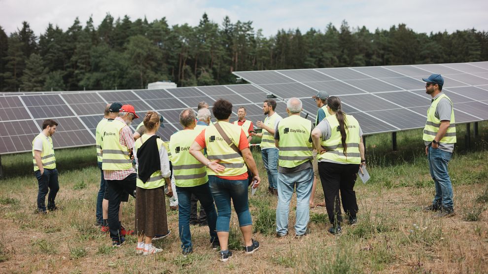 Um den Bürgerinnen und Bürgern der Marktgemeinde unseren herzlichen Dank für das gelungene Projekt auszudrücken und die lokale Energiewende für die Menschen vor Ort erlebbar zu machen, beteiligten wir uns im Juli 2024 am örtlichen Volksfest und luden die Besucher zur Solarparkbesichtigung ein. Die Teilnehmenden konnten von unserem Stand auf dem Volksfest per Shuttle-Bus zum nahe gelegenen Solarpark fahren. Dort erhielten sie eine exklusive Führung von unseren Projektleitern und einen fundierten Einblick in die Solar- und Speichertechnik. Die neu gewonnenen Erkenntnisse konnten sie direkt bei einem Solarpark Quiz testen – und natürlich wurde der Einsatz mit tollen Preisen belohnt. Die nachfolgenden Bilder vermitteln einige Eindrücke zu der gelungenen Aktion: